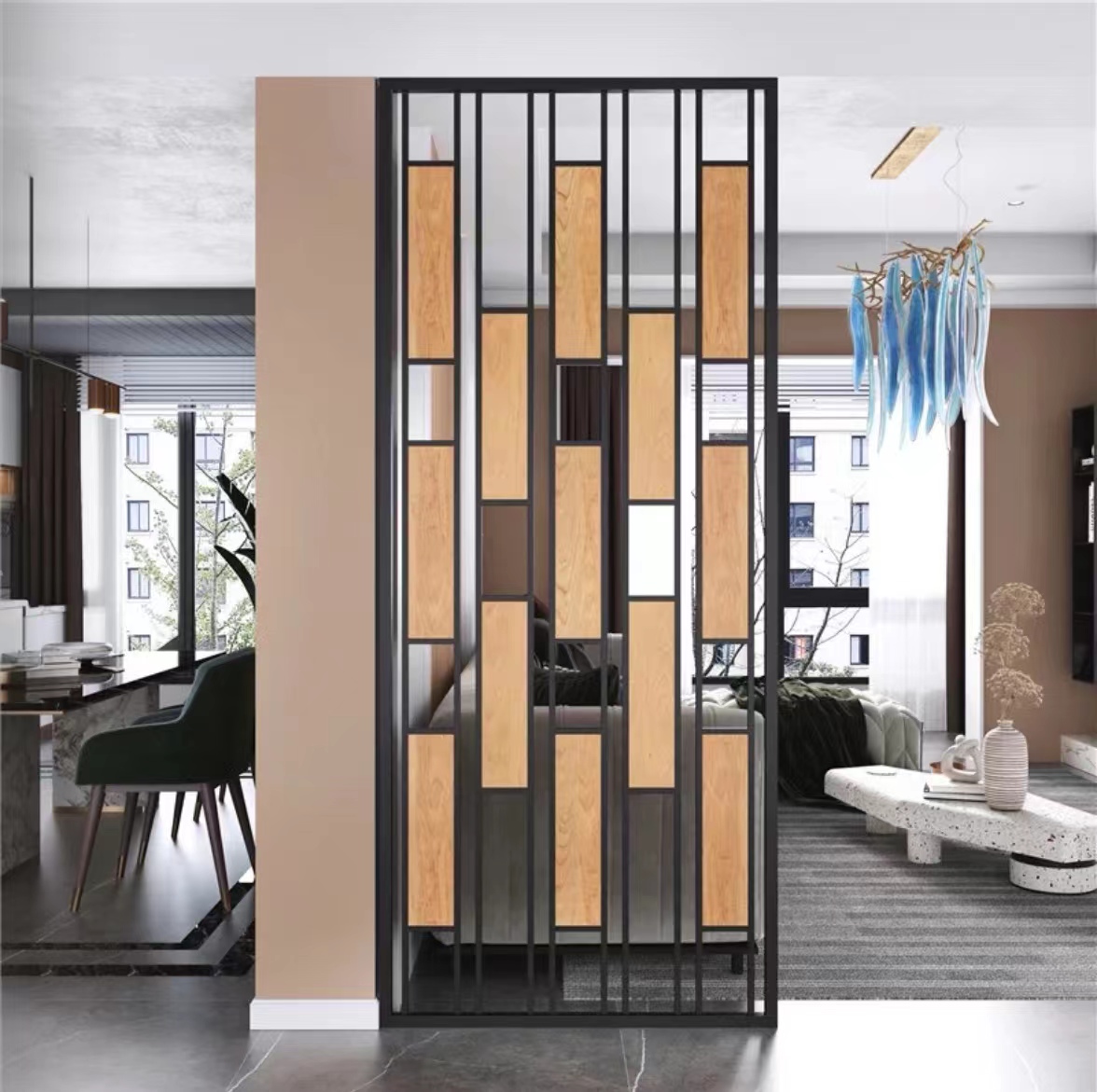 镂空+多层实木板屏风